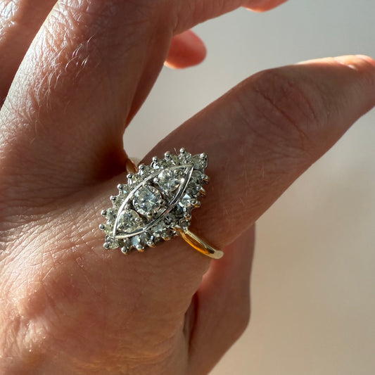 14k Yellow and White Gold Marquise .45ctw Diamond Ring Size 9.75
