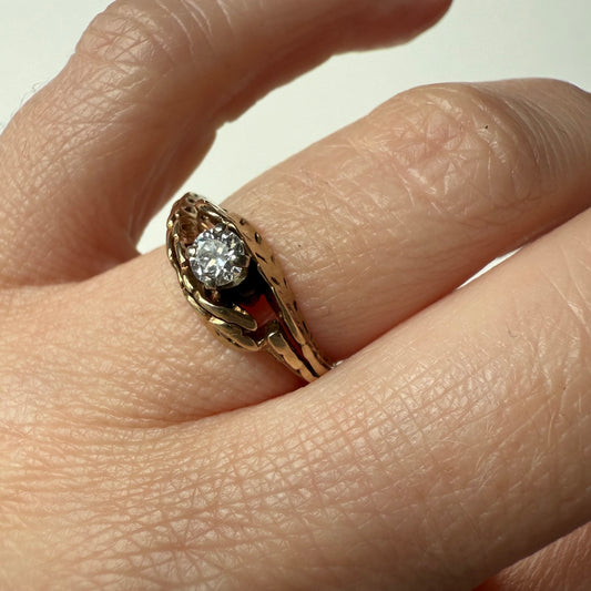 Antique European Cut .25ct Diamond Bypass 14k Ring Size 6.5