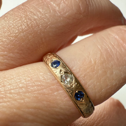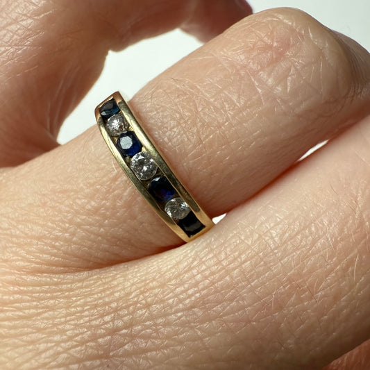 Diamond and Sapphire 14k Half Eternity Ring Size 6.25