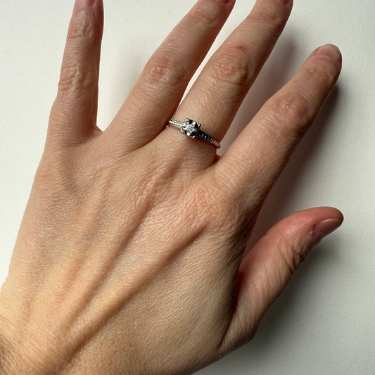 Old Mine Diamond Solitaire 14k White Gold Ring Size 8.25