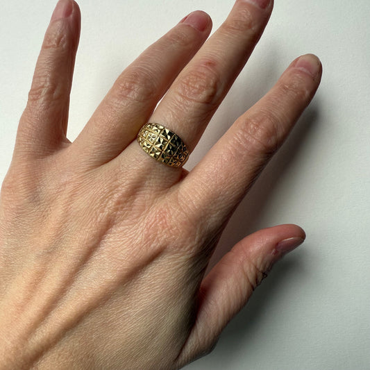 14k Yellow Gold Wide Dome Diamond Cut Band Size 8