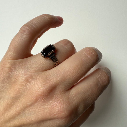 Edwardian Engraved 10k Gold Band and Garnet Ring Size 6