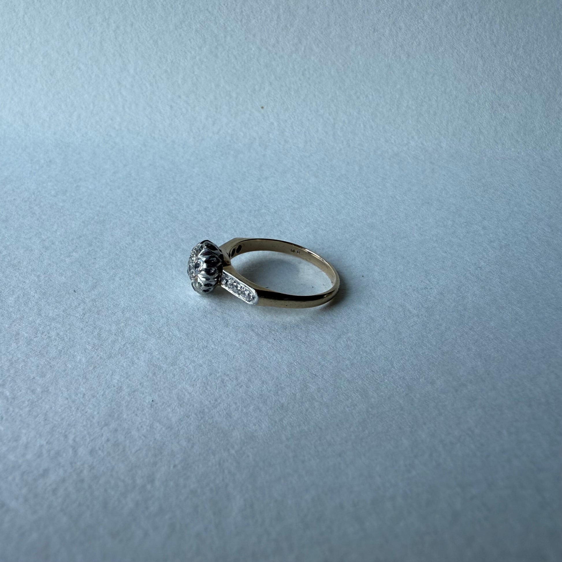 This vintage 14k yellow gold ring showcases a dazzling 0.60 ctw diamond cluster, arranged in a raised, floral-inspired setting. The design offers brilliant sparkle and depth, with each diamond catching the light beautifully from every angle.